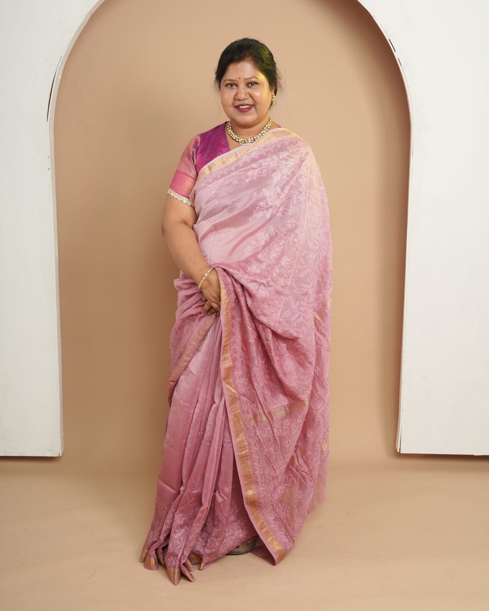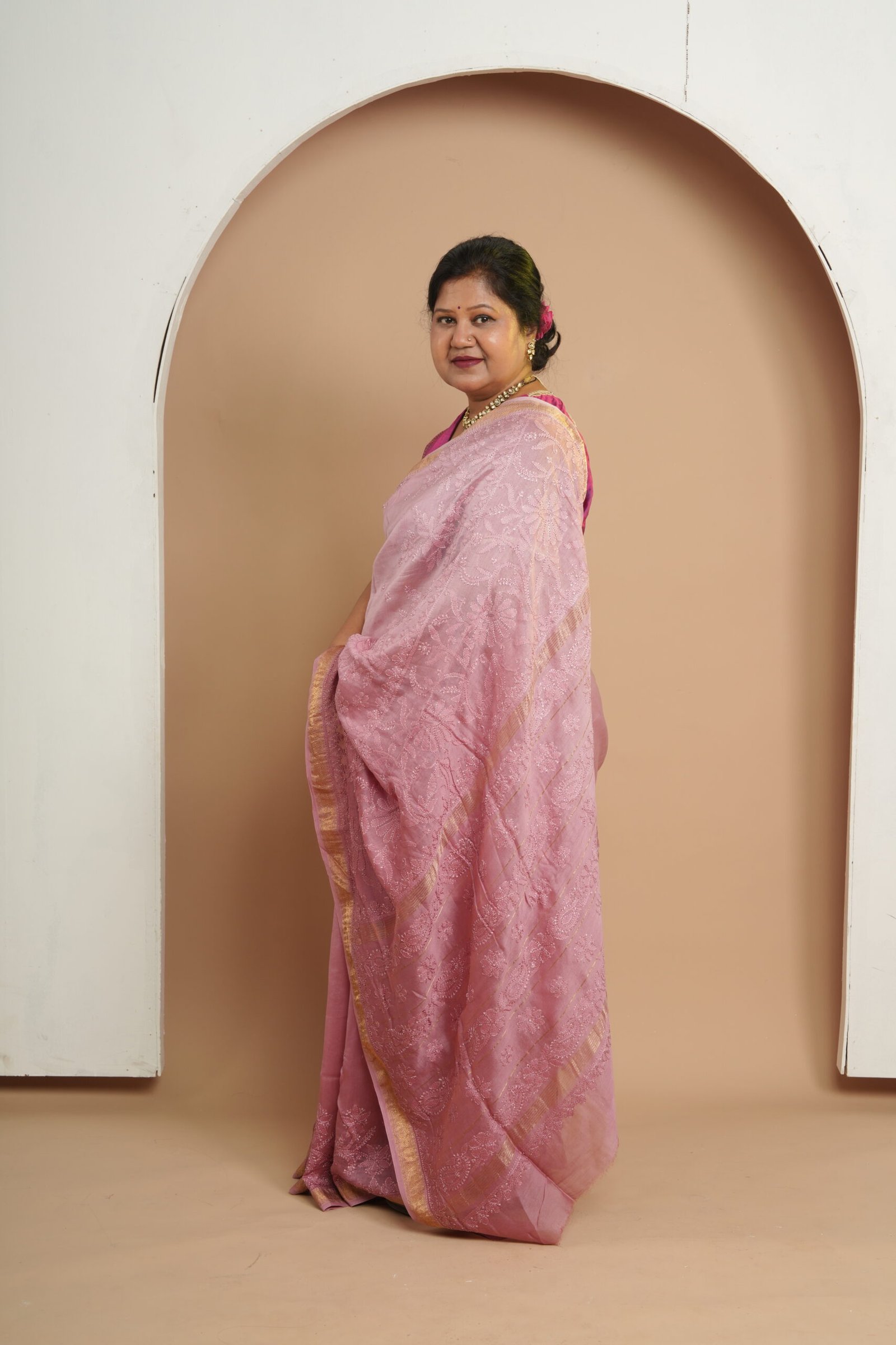 - Work: Authentic Lucknowi Chikankari (all-over floral embroidery)