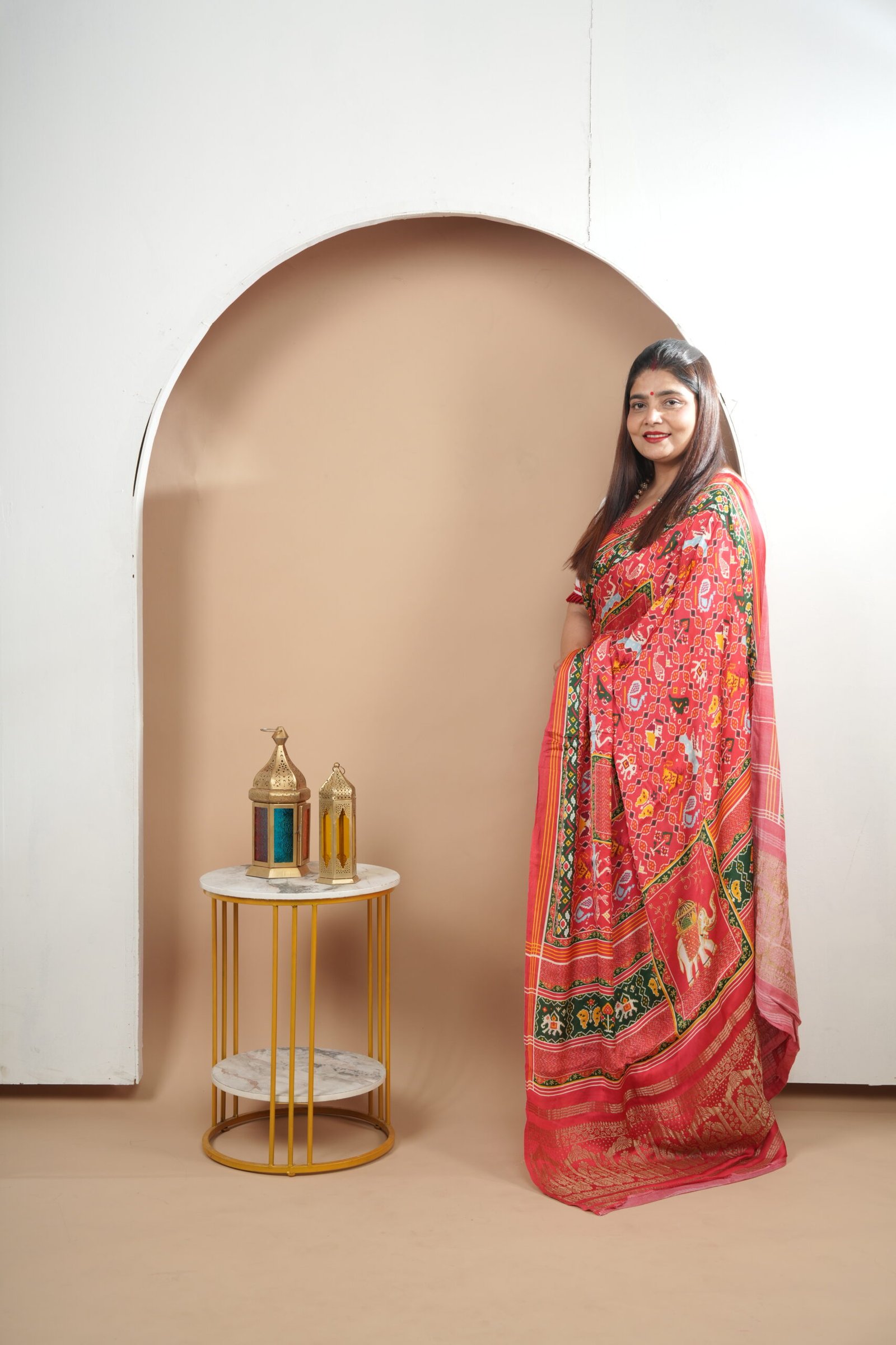 - Work: All-over digital print in a traditional Patola style.